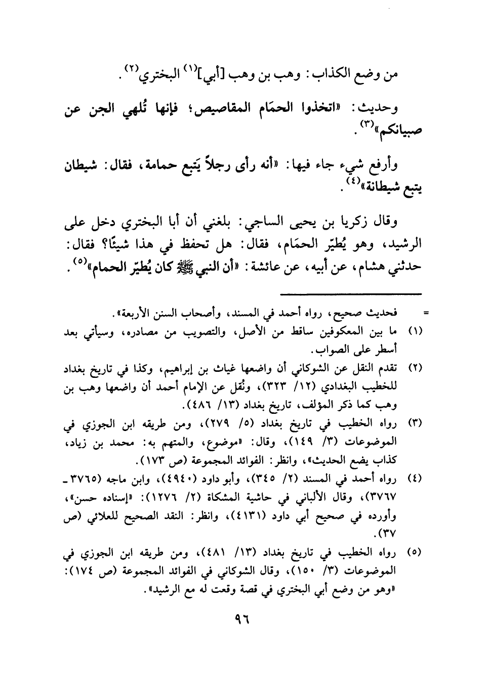 (¬٥) رواه الخطيب في تاريخ بغداد (١٣/ ٤٨١)، ومن طريقه ابن الجوزي في الموضوعات (٣/ ١٥٠)، وقال الشوكاني في الفوائد المجموعة (ص ١٧٤): "وهو من وضع أبي البختري في قصة وقعت له مع الرشيد".