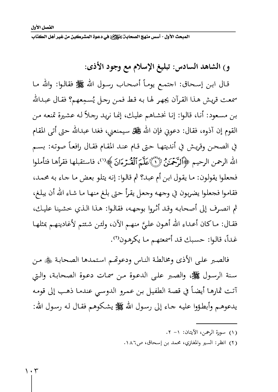 و) الشاهد السادس: تبليغ الإسلام مع وجود الأذى: