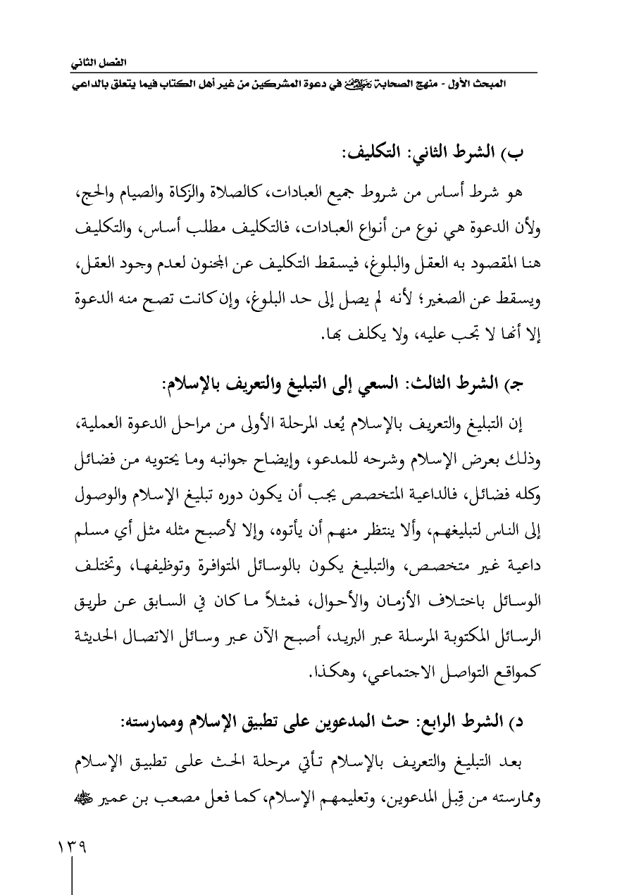 جـ) الشرط الثالث: السعي إلى التبليغ والتعريف بالإسلام: