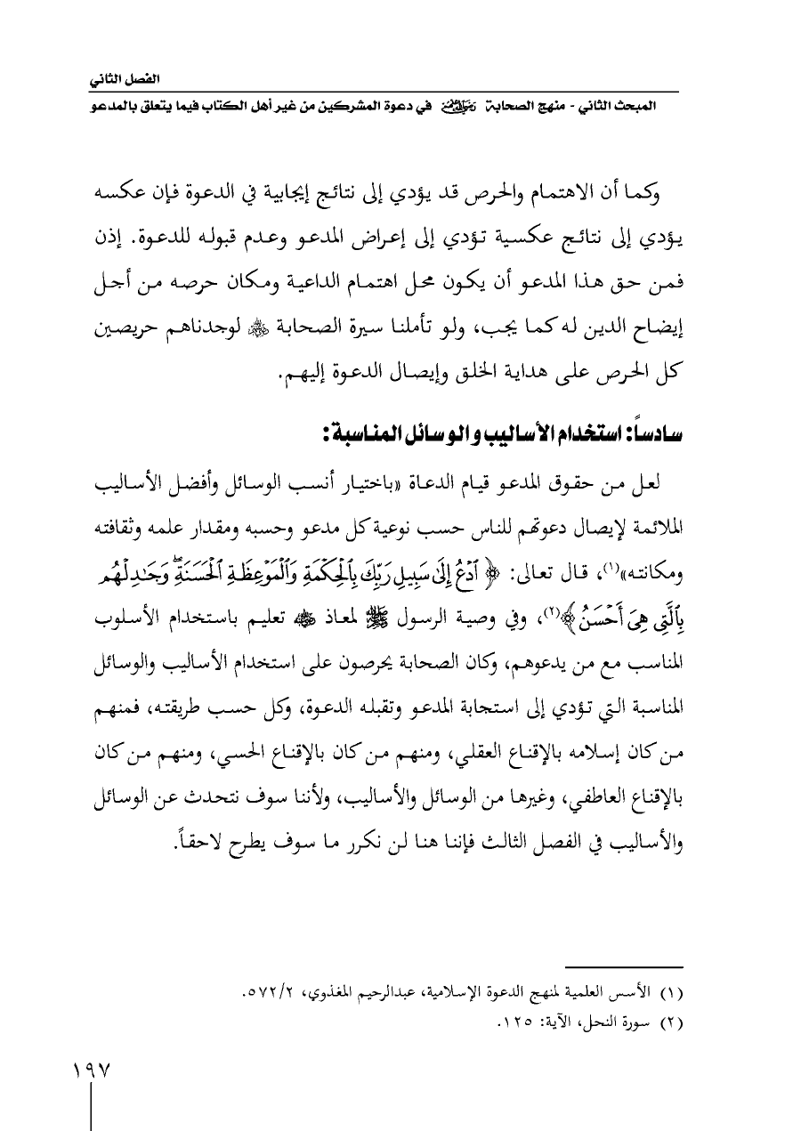(¬١) الأسس العلمية لمنهج الدعوة الإسلامية، عبدالرحيم المغذوي، ٢/ ٥٧٢.