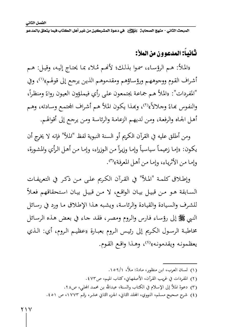 (¬٣) دعوة الملأ إلى الإسلام في الكتاب والسنة، عبدالله بن محمد المجلي، ص ٢٨.