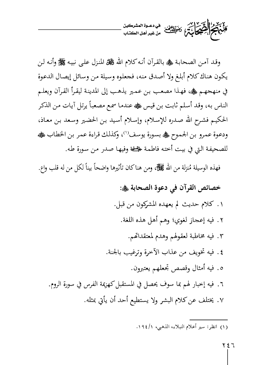 خصائص القرآن في دعوة الصحابة - رضي الله عنهم -: