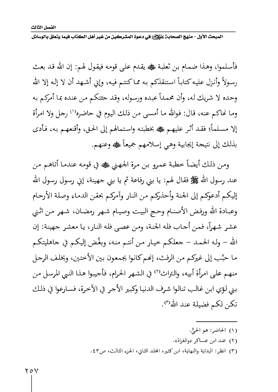 (¬٣) انظر: البداية والنهاية، ابن كثير، المجلد الثاني، الجزء الثالث، ص ٤٣.