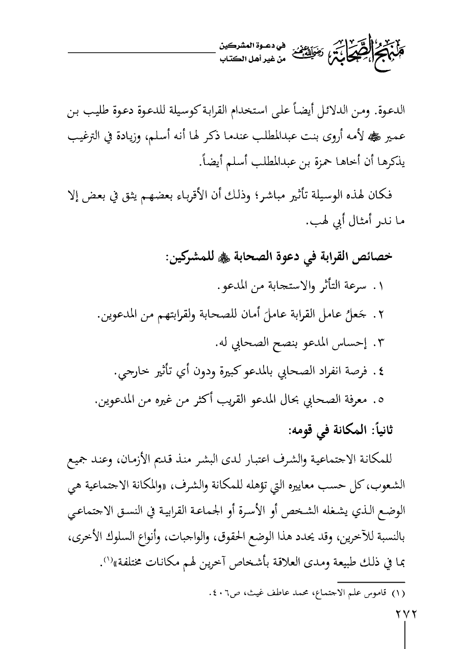 خصائص القرابة في دعوة الصحابة - رضي الله عنهم - للمشركين: