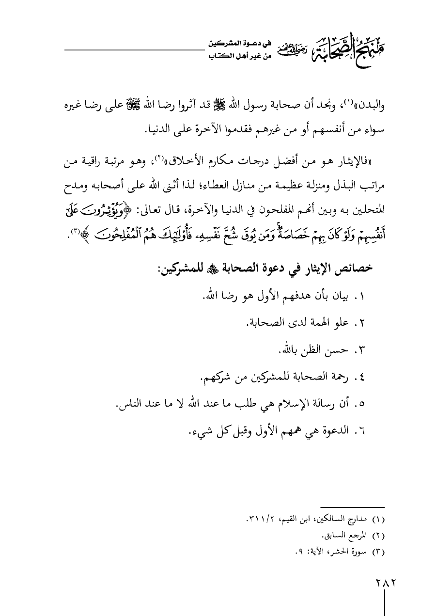 خصائص الإيثار في دعوة الصحابة - رضي الله عنهم - للمشركين: