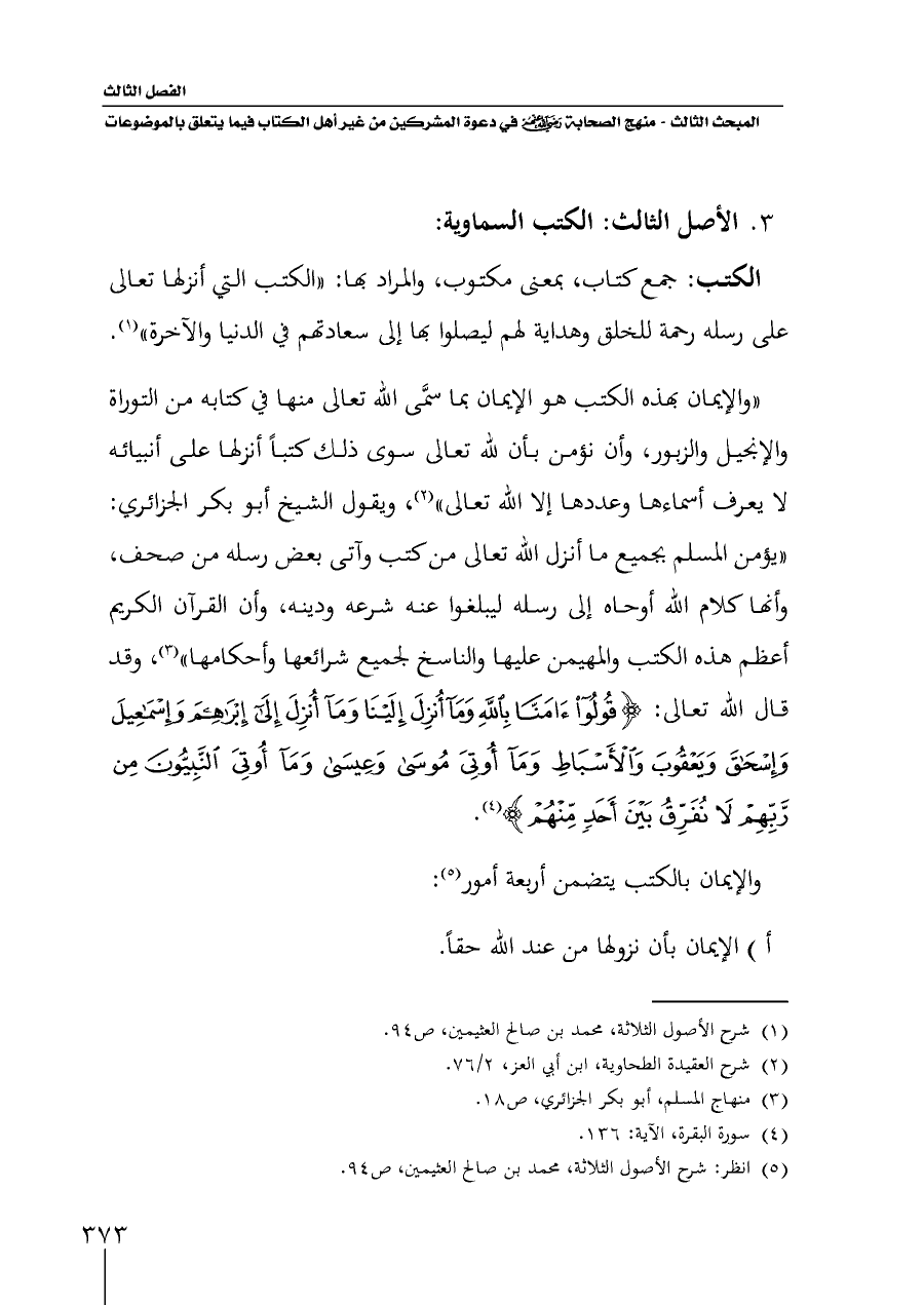 (¬٥) انظر: شرح الأصول الثلاثة، محمد بن صالح العثيمين، ص ٩٤.