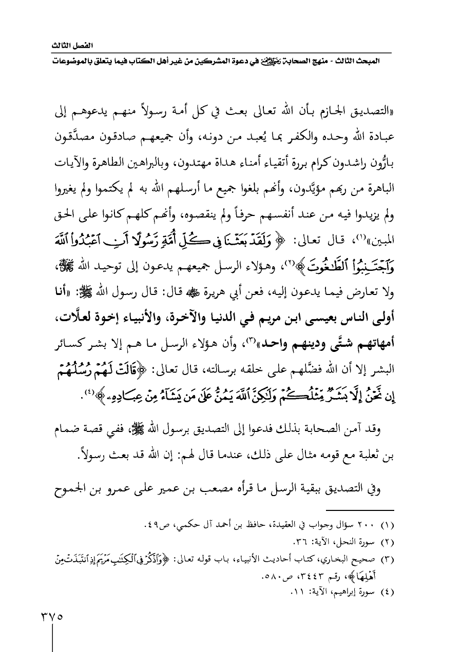 وفي التصديق ببقية الرسل ما قرأه مصعب بن عمير على عمرو بن الجموح