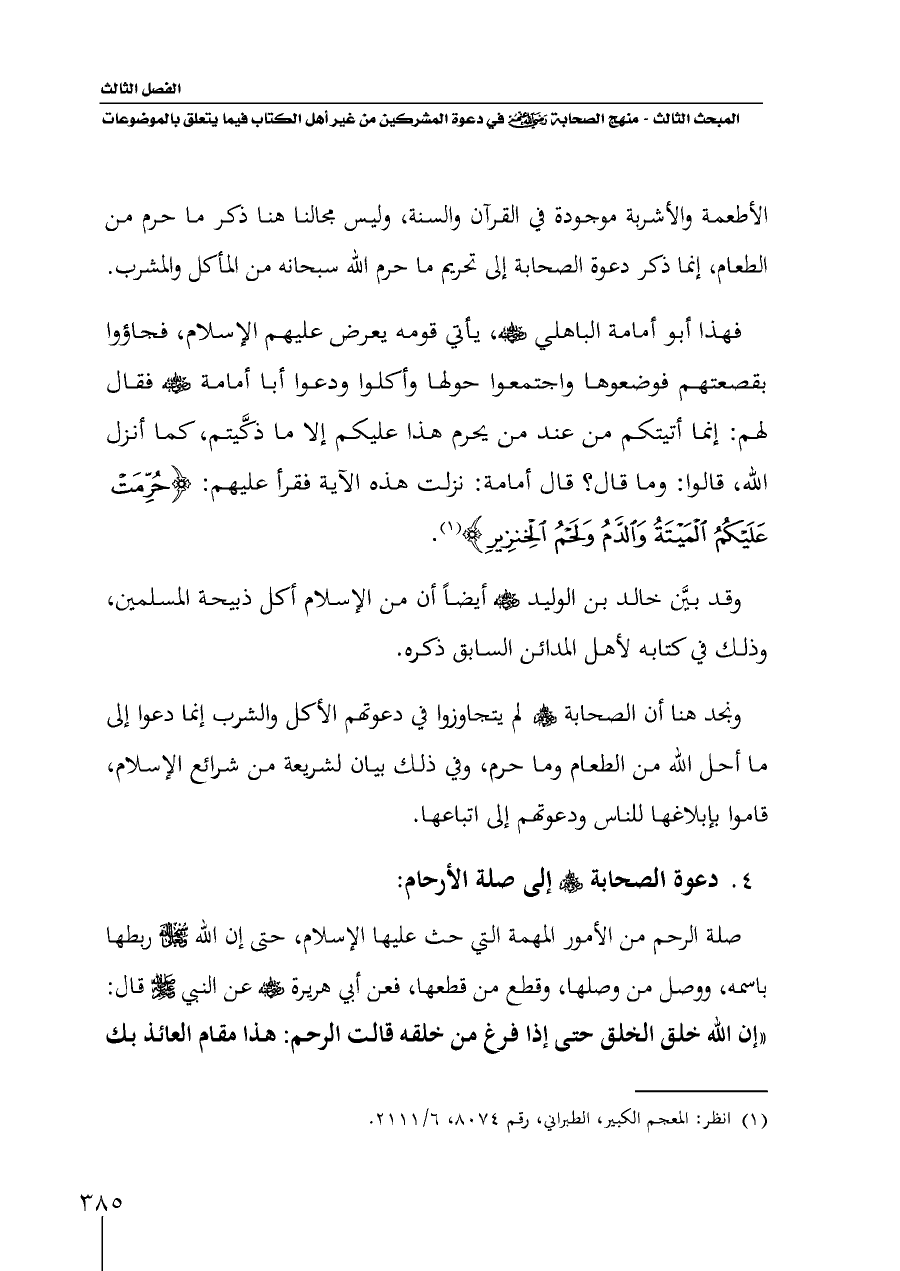 ٤ - دعوة الصحابة - رضي الله عنهم - إلى صلة الأرحام: