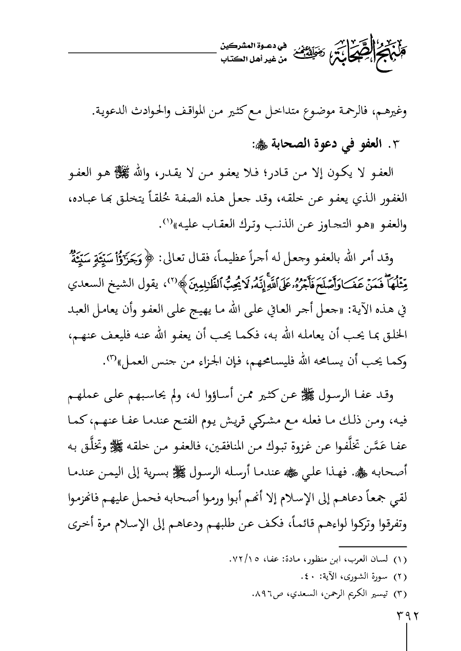 ٣ - العفو في دعوة الصحابة - رضي الله عنهم -:
