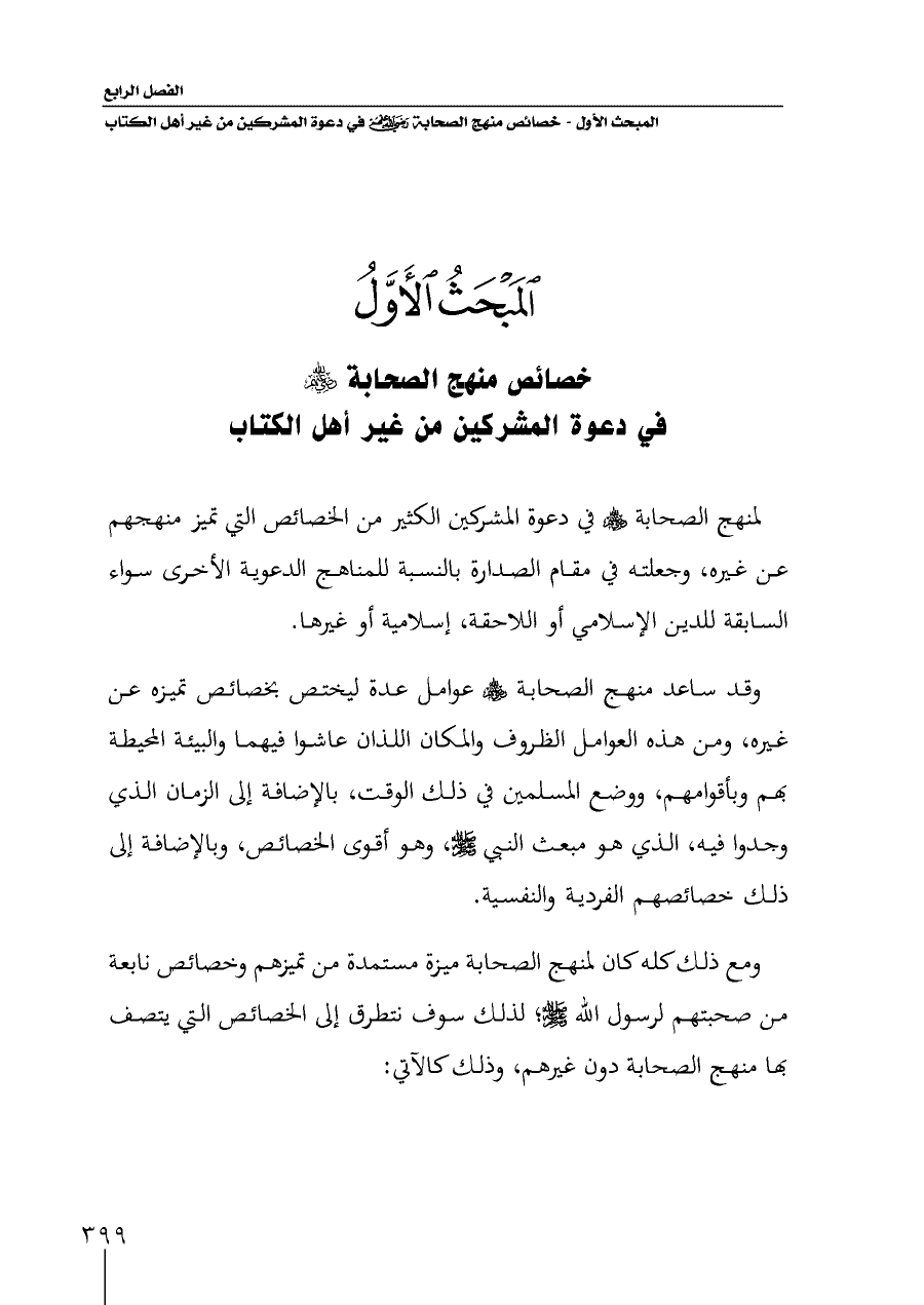 خصائص منهج الصحابة - رضي الله عنهم - في دعوة المشركين من غير أهل الكتاب