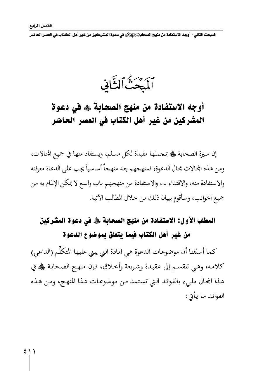 أوجه الاستفادة من منهج الصحابة - رضي الله عنهم - في دعوة المشركين من غير أهل الكتاب في العصر الحاضر