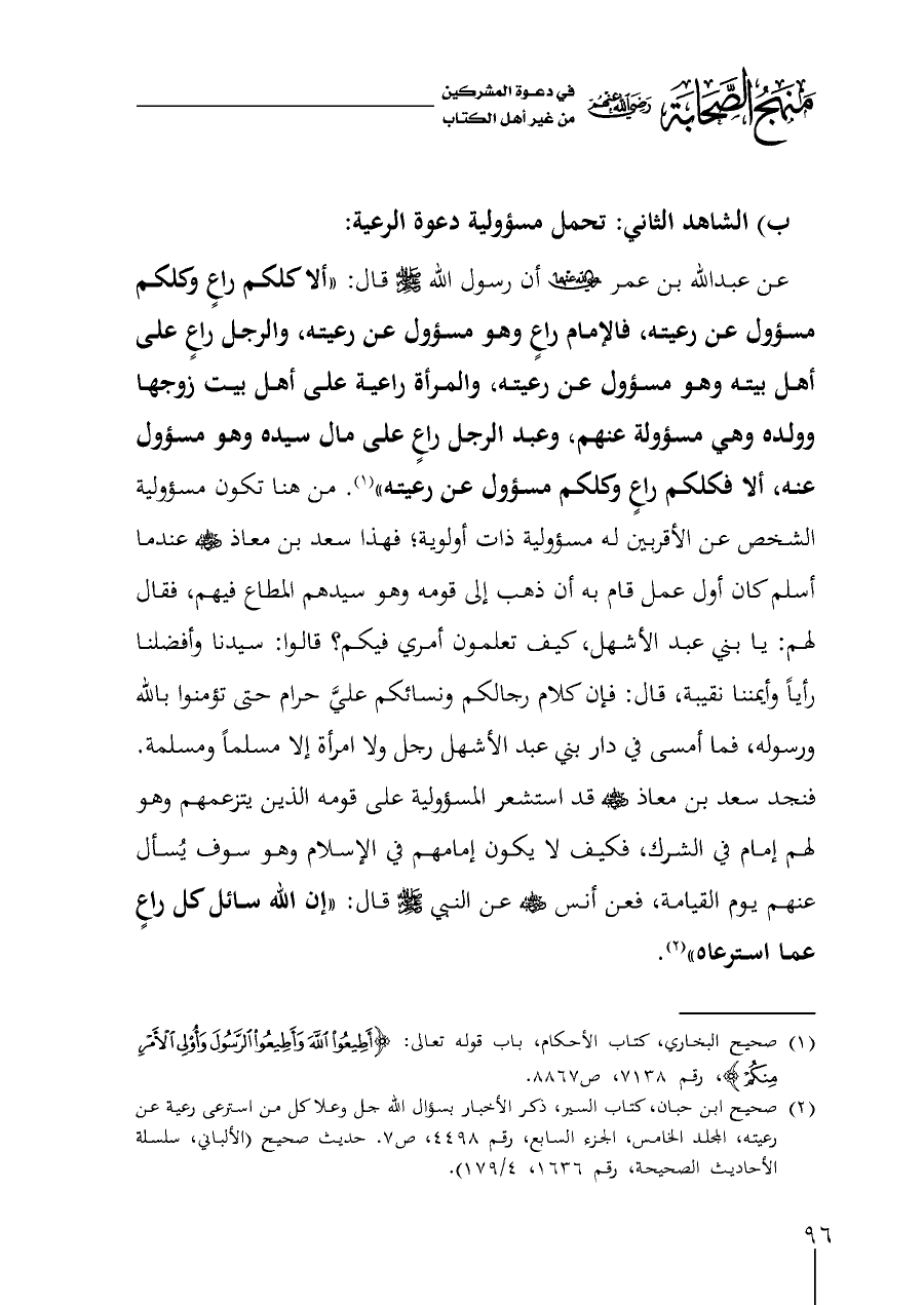 ب) الشاهد الثاني: تحمل مسؤولية دعوة الرعية: