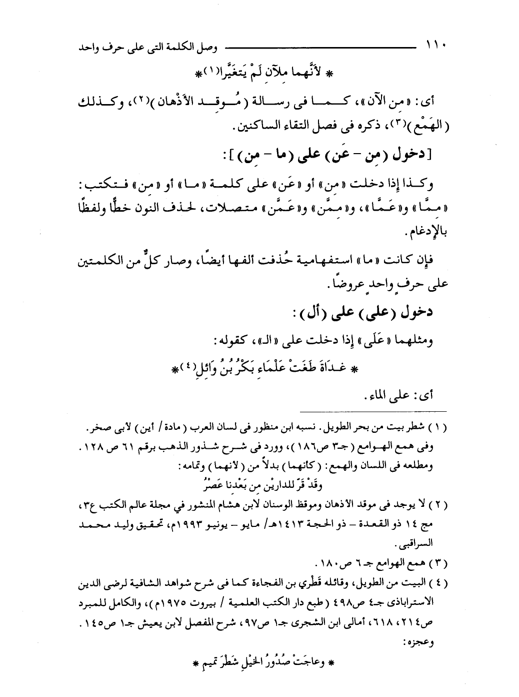 أي: "مِن الآن"، كما في رسالة (مُوقِد الأَذْهان) (2)، وكذلك (الهَمْع) (3)، ذكره في فصل التقاء الساكنين.