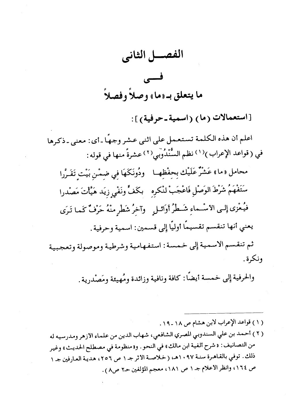 الفصل الثاني في ما يتعلق بـ "ما" وصلًا وفصلًا
