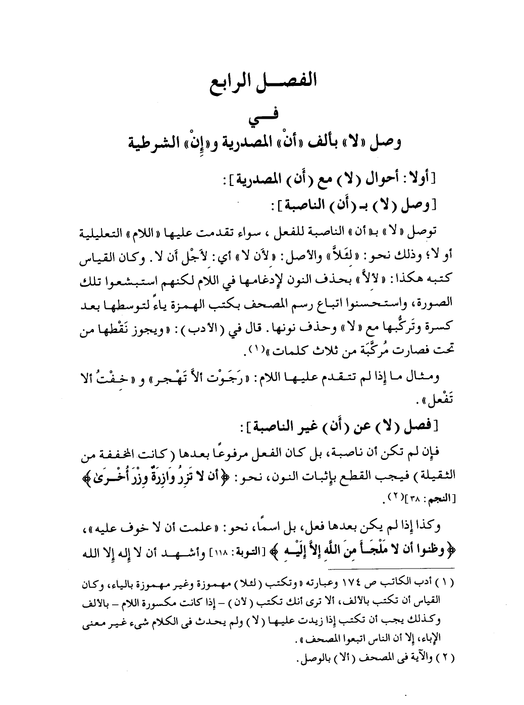 الفصل الرابع في وصل "لا" بألف "أنْ" المصدرية و"إنْ" الشرطية