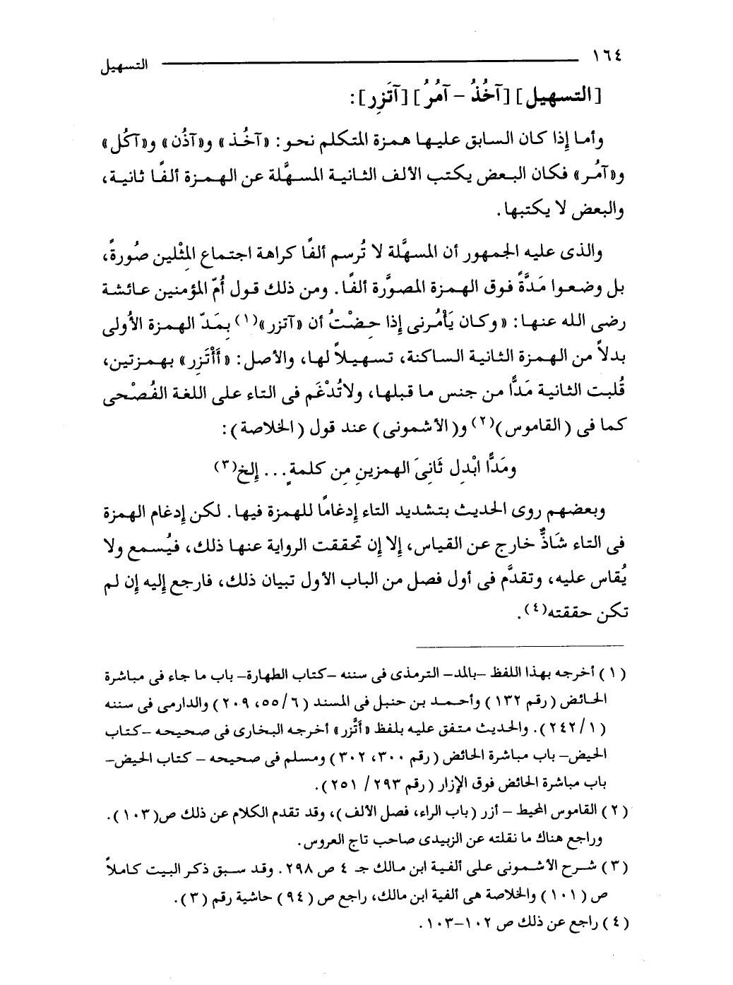وبعضهم روى الحديث بتشديد التاء إِدغامًا للهمزة فيها. لكن إِدغام الهمزة في التاء شَاذٌّ خارج عن القياس، إِلا إِن تحققت الرواية عنها ذلك، فيُسمع ولا يُقاس عليه، وتقدَّم في أول فصل من الباب الأول تبيان ذلك، فارجع إِليه إِن لم تكن حققته (4).