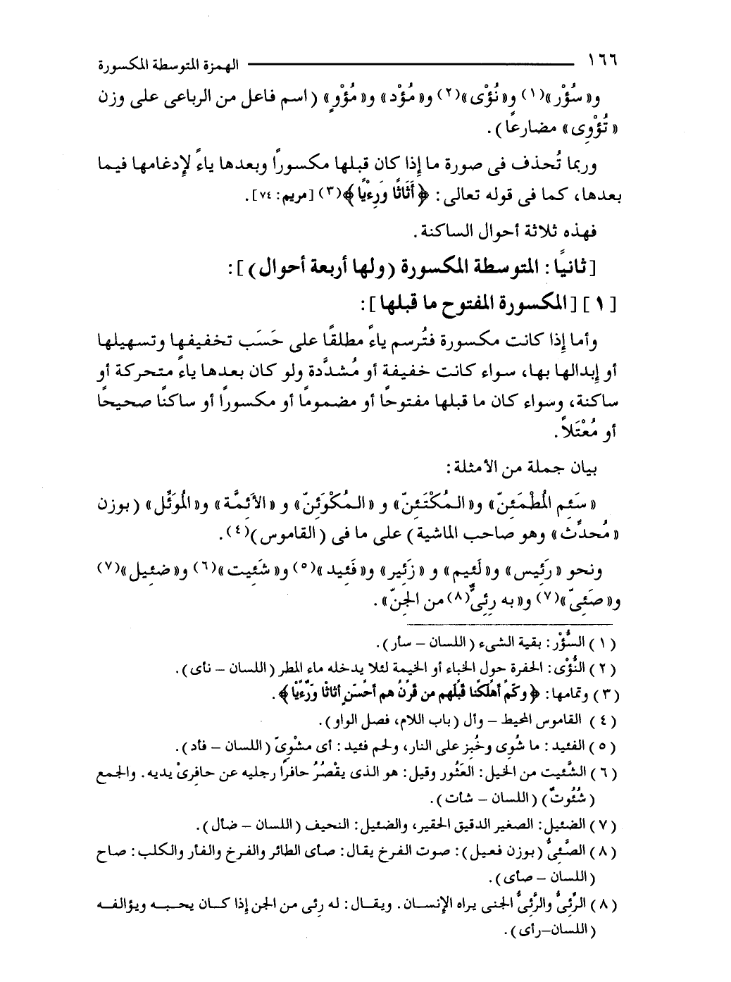 ونحو "رَئيس" و"لَئيم" و"زَئير" و"فَئِيد" (5) و"شَئِيت" (6) و"ضئِيل" (7) و"صَئِىّ" (8) و"به رِئِىّ (9) من الجِنّ".