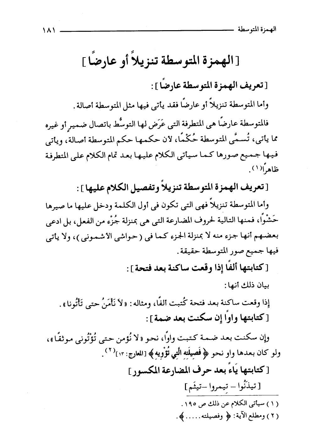 [تعريف الهمزة المتوسطة تنزيلًا وتفصيل الكلام عليها]: