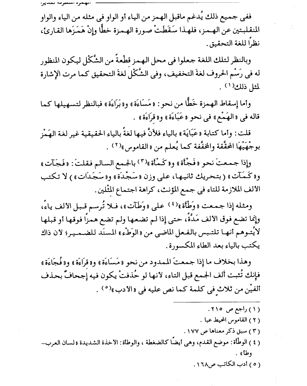 قلت: وأما كتابة "عَبَايَة" بالياء فلأَنَّ فيها لغةً بالياء الحقيقية غير لغة الهَمْز بوجْهَيْهَا المحقَّقة والمخفَّفة كما يُعلم من "القاموس" (2).