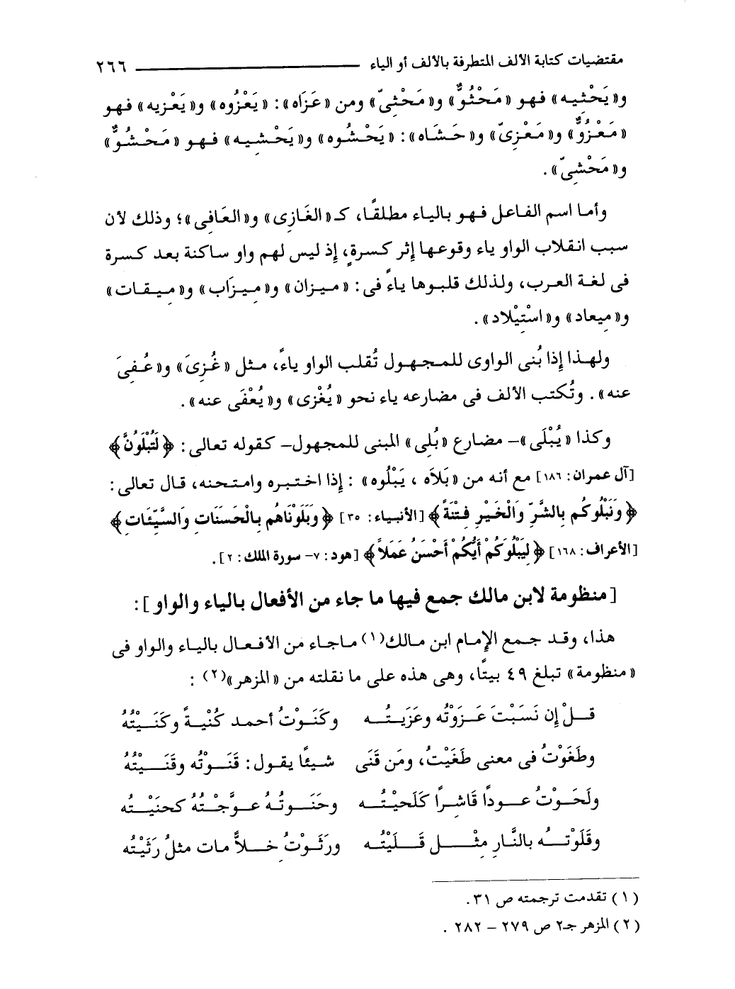 [منظومة لابن مالك جمع فيها ما جاء من الأفعال بالياء والواو]: