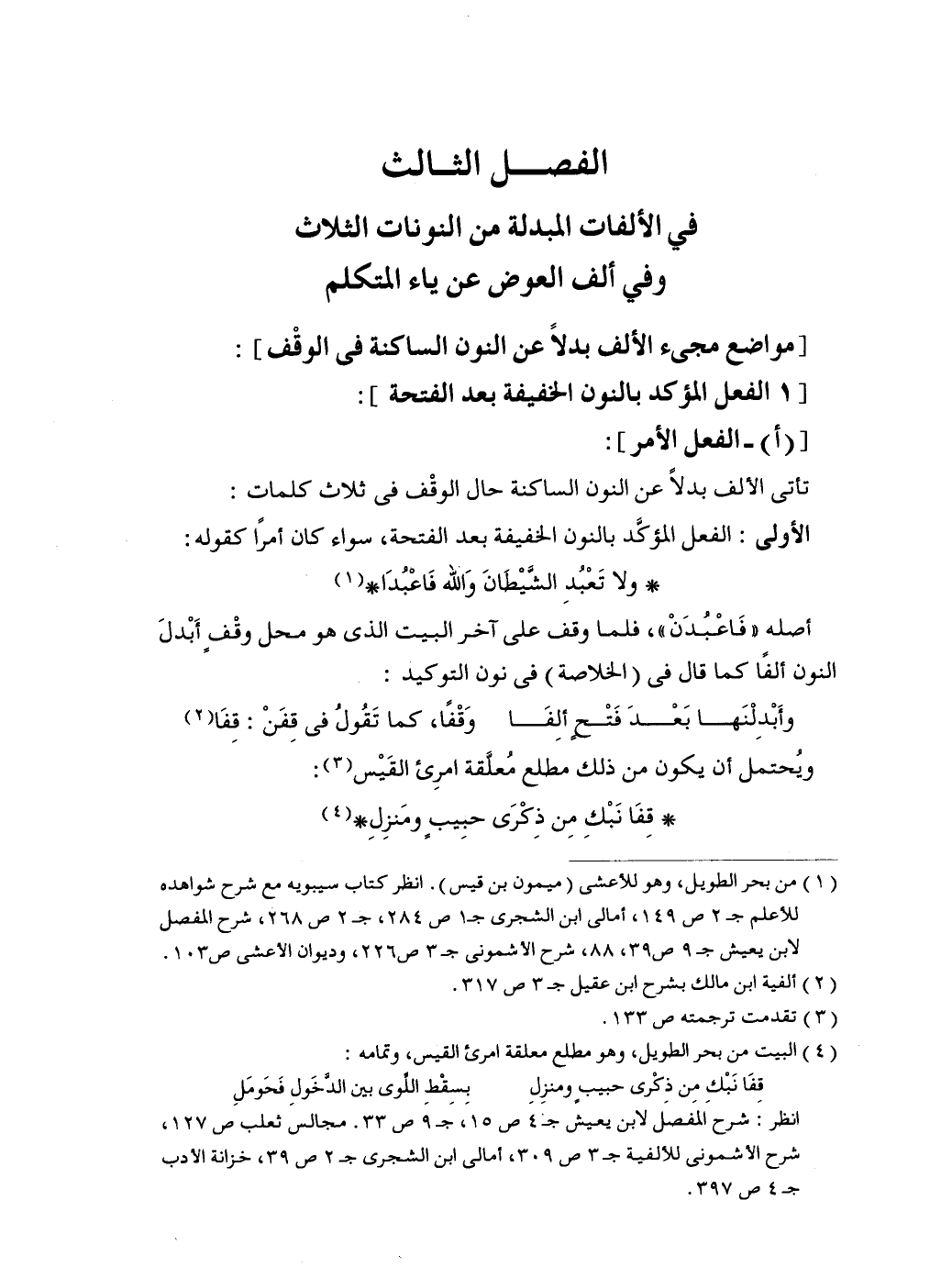 الفصل الثالث في الألفات المبدلة من النونات الثلاث وفي ألف العوض عن ياء المتكلم