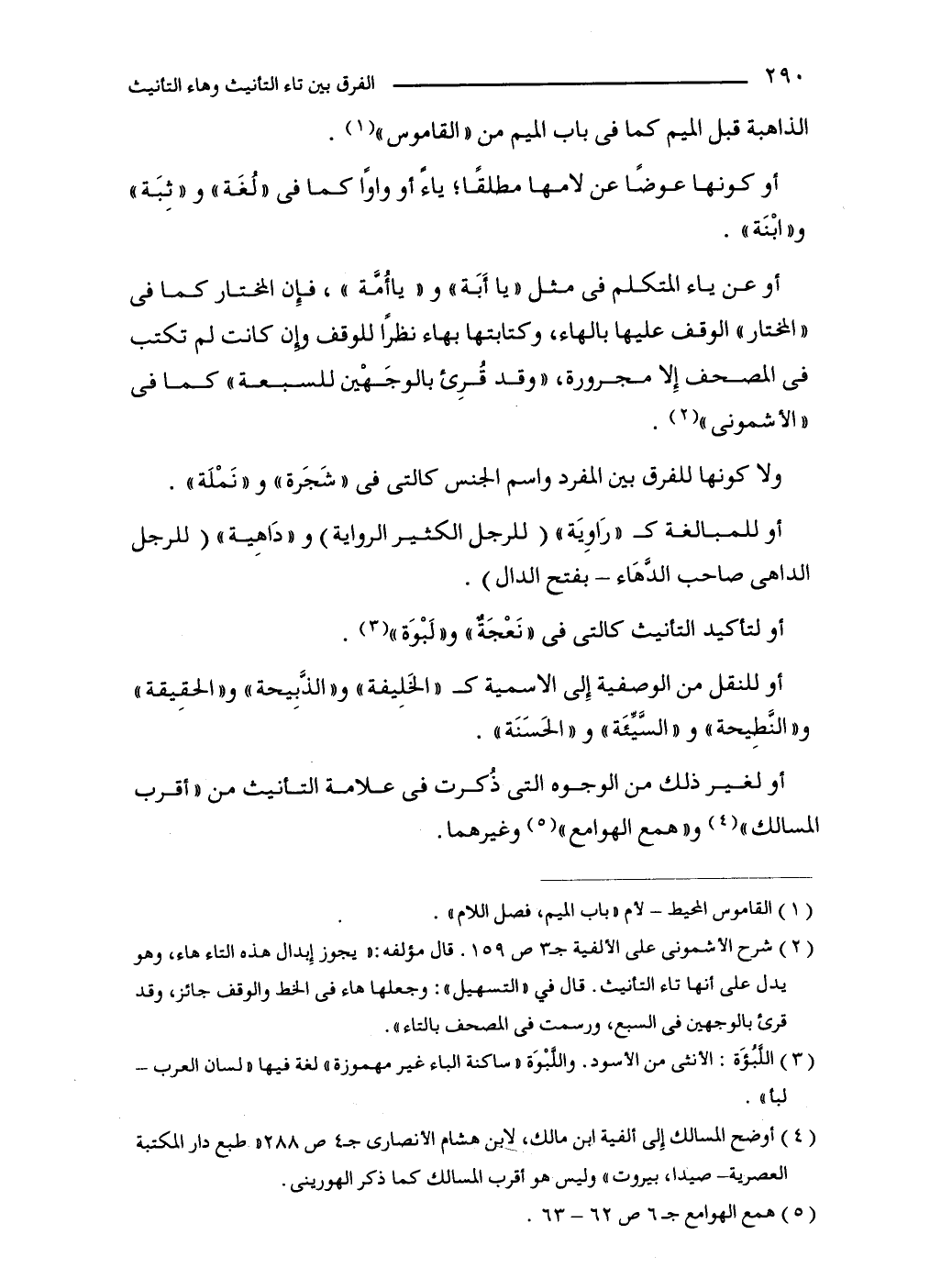 (4) أوضح المسالك إِلى ألفية ابن مالك، لابن هشام الأنصارى جـ4 ص 288 "طبع دار المكتبة العصرية -صيدا، بيروت" وليس هو أقرب المسالك كما ذكر الهورينى.