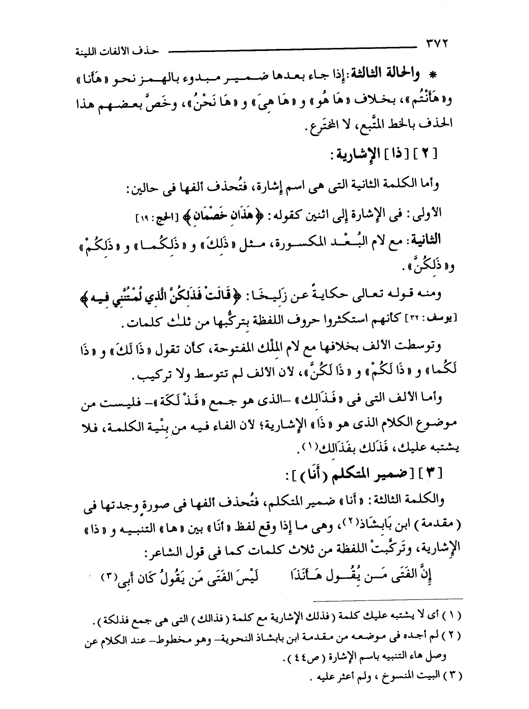 (2) لم أجده في موضعه من مقدمة ابن بابشاذ النحوية -وهو مخطوط- عند الكلام عن وصل هاء التنبيه باسم الإِشارة (ص 44).