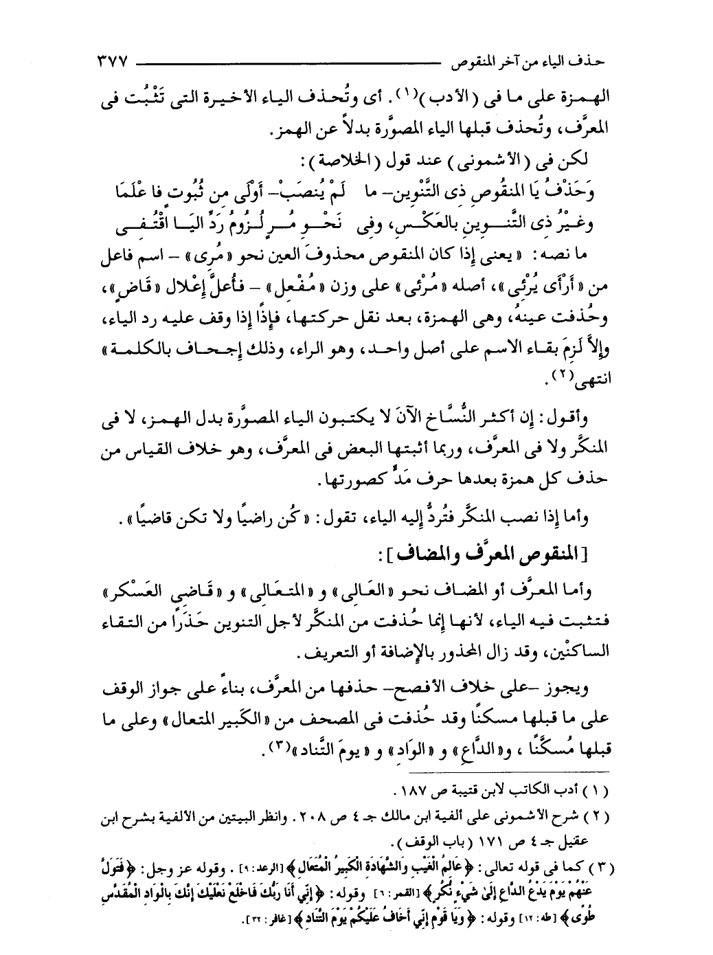 (2) شرح الأشمونى على ألفية ابن مالك جـ4 ص 208. وانظر البيتين من الألفية بشرح ابن عقيل جـ4 ص 171 (باب الوقف).