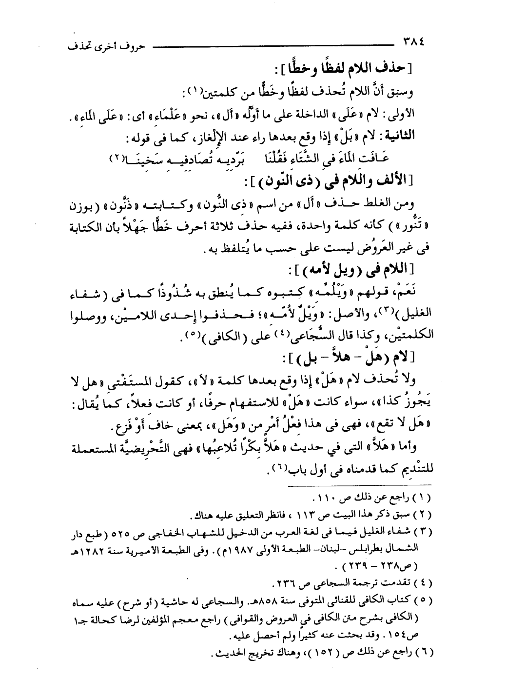 (5) كتاب الكافي للقنائى المتوفى سنة 858 هـ. والسجاعى له حاشية (أو شرح) عليه سماه (الكافي بشرح متن الكافي في العروض والقوافى) راجع معجم المؤلفين لرضا كحالة جـ1 ص 154. وقد بحثت عنه كثيرًا ولم أحصل عليه.