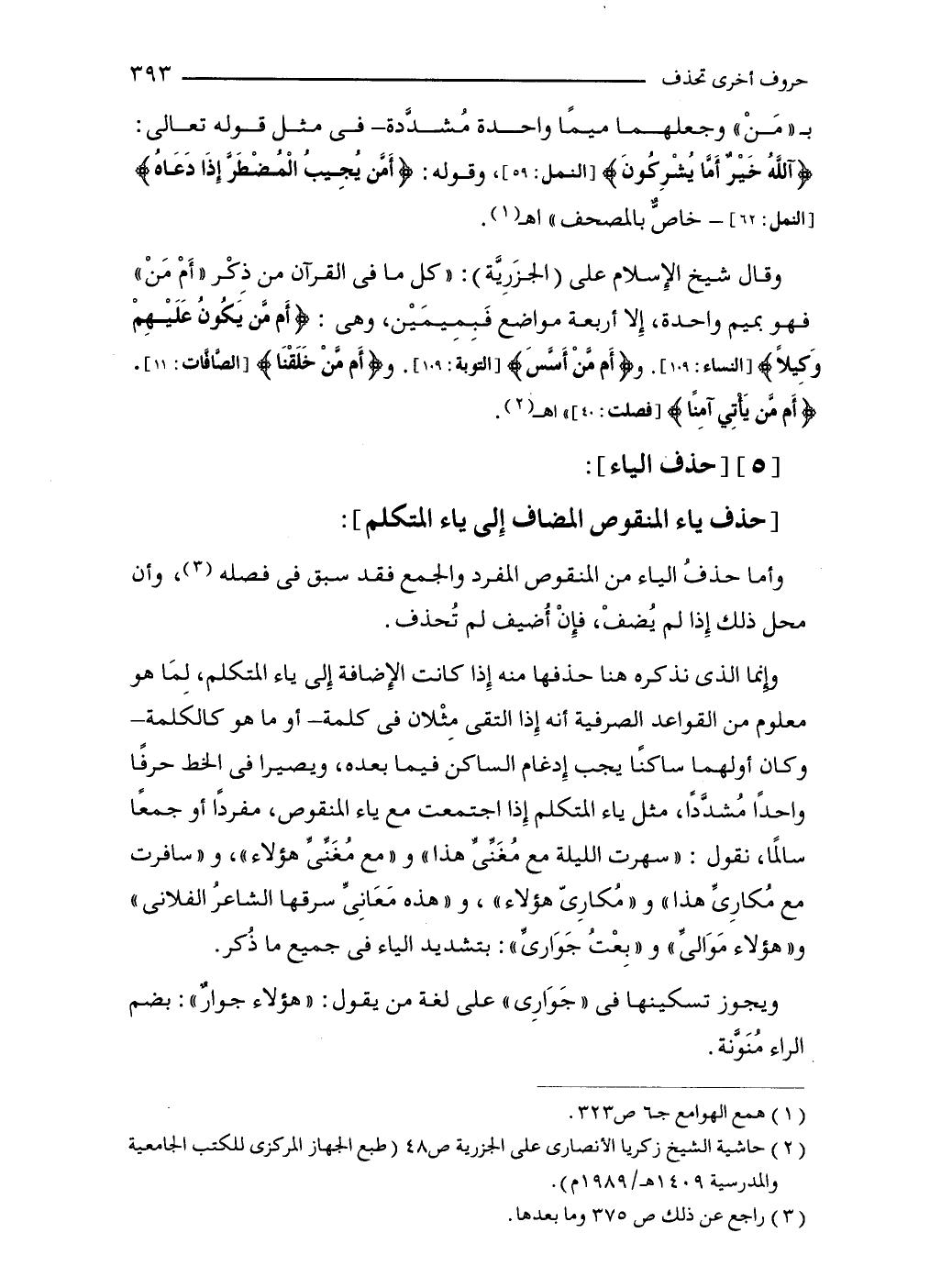 (2) حاشية الشيخ زكريا الأنصارى على الجزرية ص 48 (طبع الجهاز المركزى للكتب الجامعية والمدرسية 1409 هـ / 1989 م).