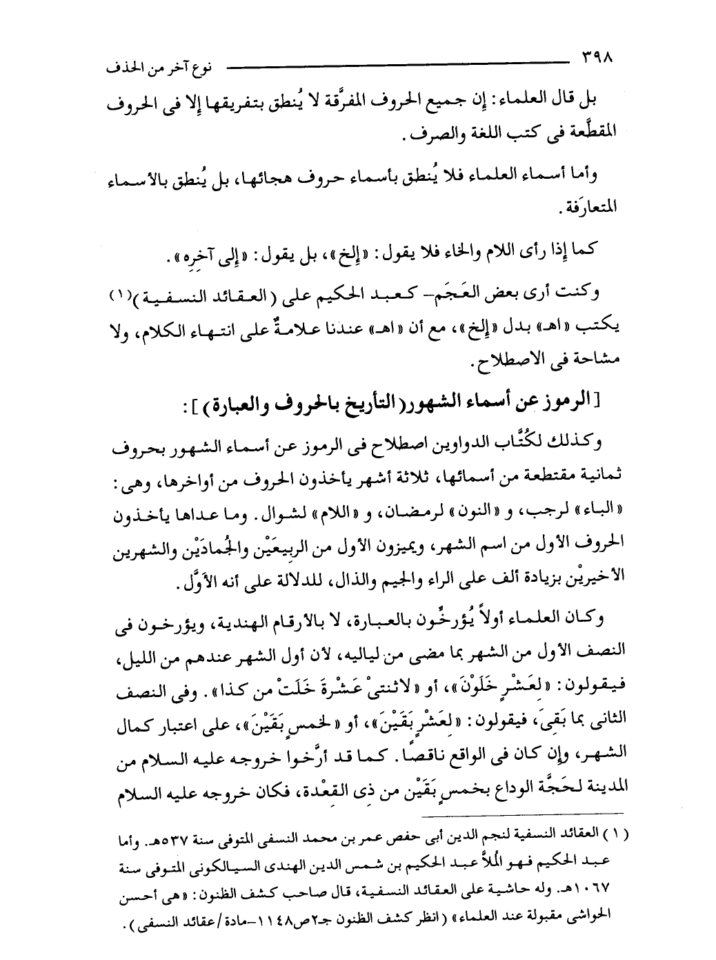 وكنت أرى بعض العَجَم -كعبد الحكيم على (العقائد النسفية) (1) يكتب"اهـ" بدل "إِلخ"، مع أن "اهـ" عندنا علامةٌ على انتهاء الكلام، ولا مشاحة في الاصطلاح.