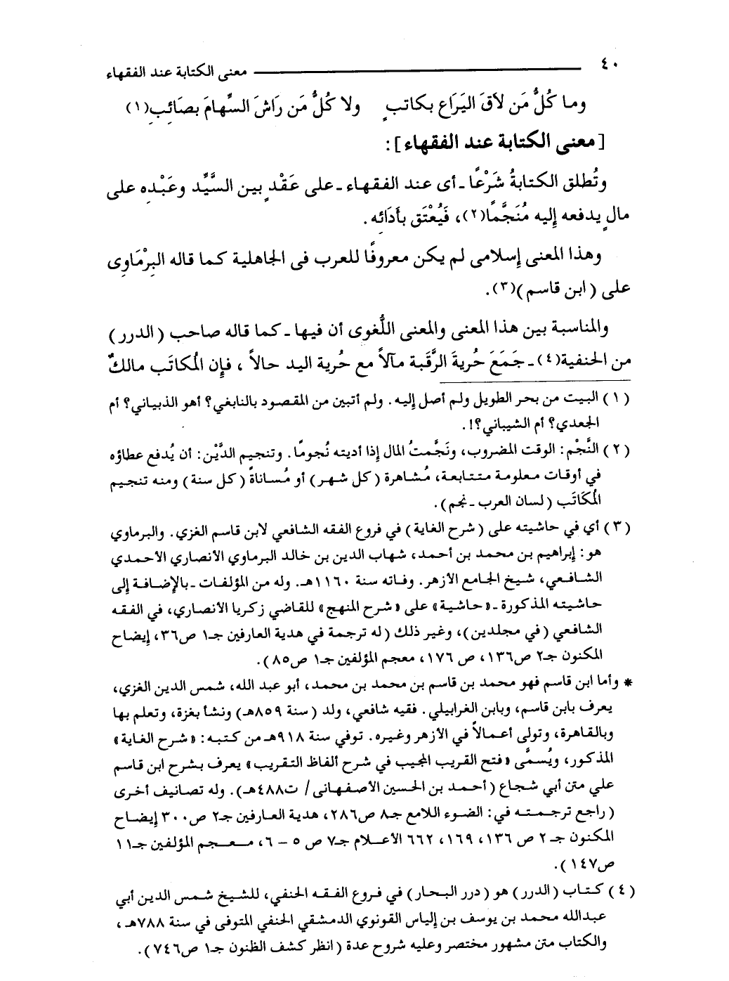 وهذا المعنى إِسلامى لم يكن معروفًا للعرب في الجاهلية كما قاله البِرْمَاوِى على (ابن قاسم) (3).