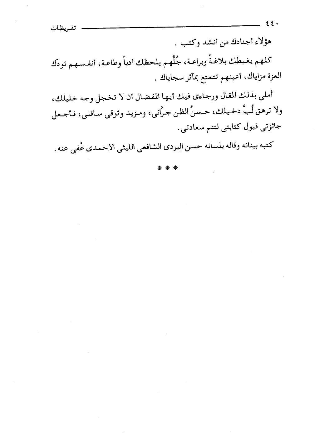 كتبه ببنانه وقاله بلسانه حسن البردى الشافعى الليثى الأحمدى عُفى عنه.