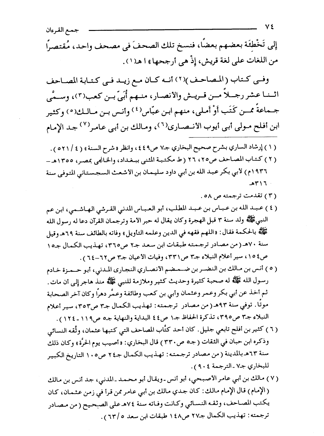 (2) كتاب المصاحف ص 25، 26 (ط مكتبة المثنى ببغداد، والخانجى بمصر، 1355 هـ - 1936م) لأبي بكر عبد الله بن أبي داود سليمان بن الأشعث السجستاني المتوفى سنة 316هـ.