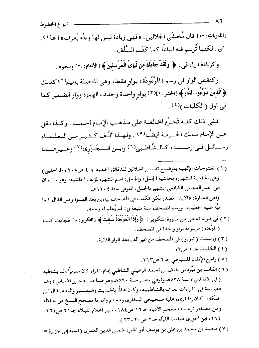 [الذاريات: 47] قال مُحشّى الجلالين: "فهي زيادة ليس لها وجْه يُعرف" اهـ (1). أي: لكنها تُرسم فيه اتباعًا كما كَتَب السَّلَف.