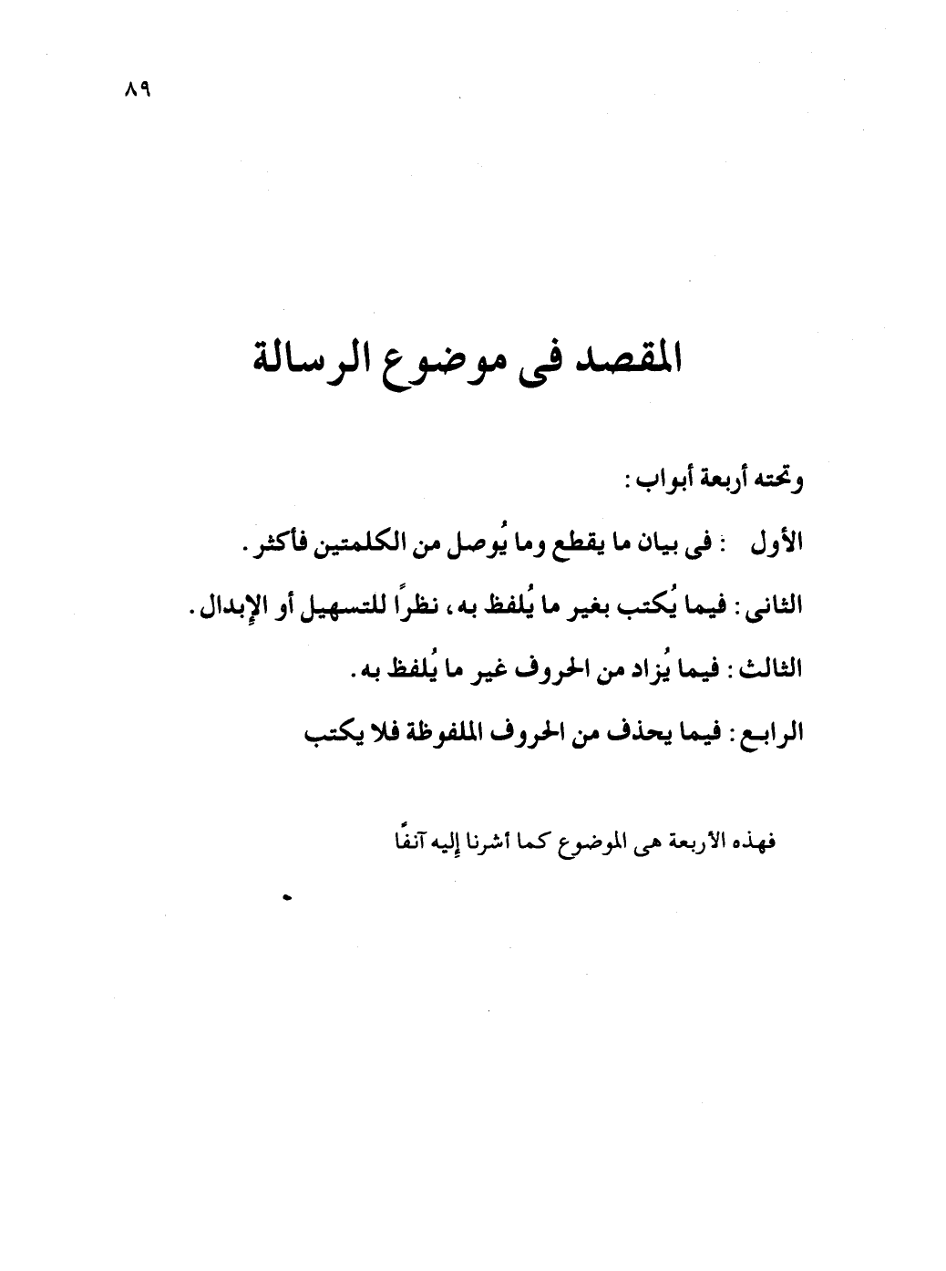 المقصد في موضوع الرسالة