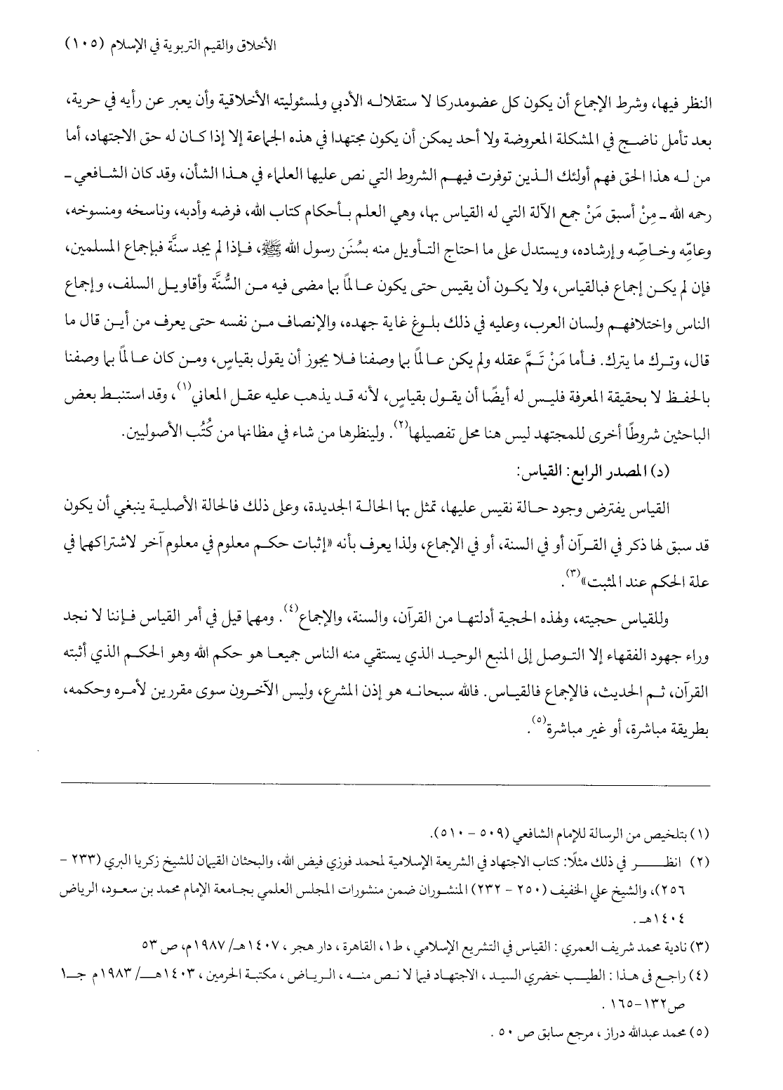 (4) راجع فى هذا: الطيب خضري السيد، الاجتهاد فيما لا نص منه، الرياض، مكتبة الحرمين، 1403 هـ/ 1983 م ج 1 ص 132- 165.