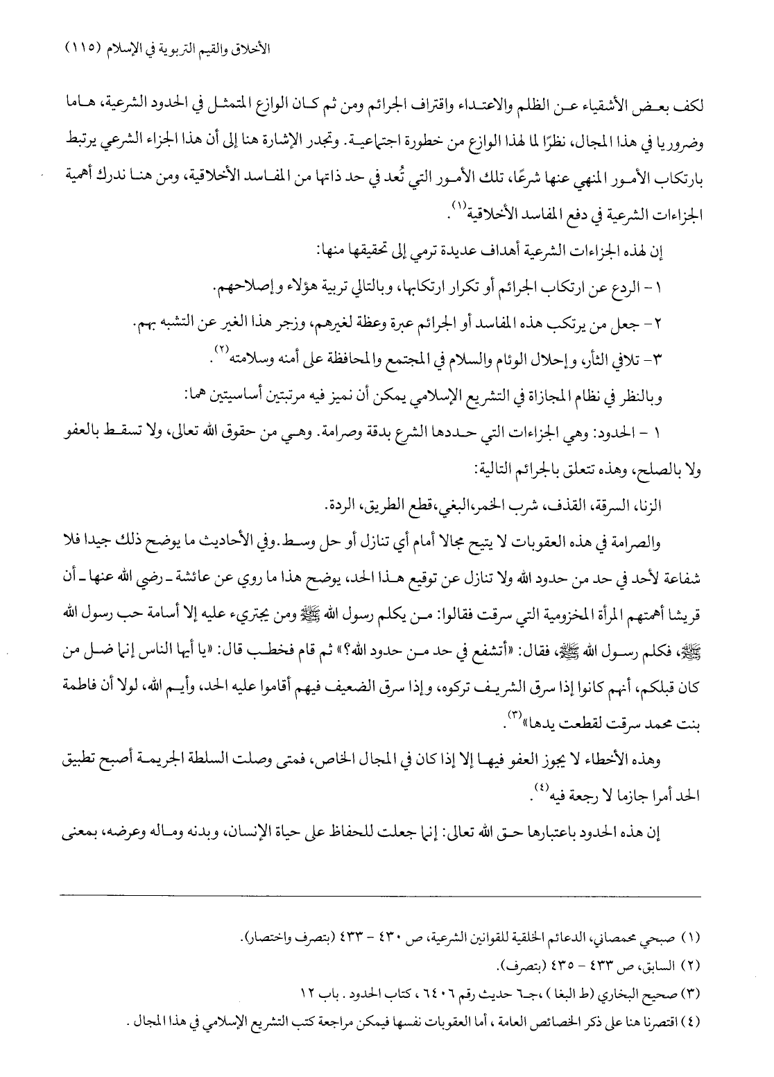 (4) اقتصرنا هنا على ذكر الخصائص العامة، أما العقوبات نفسها فيمكن مراجعة كتب التشريع الإسلامي في هذا المجال.