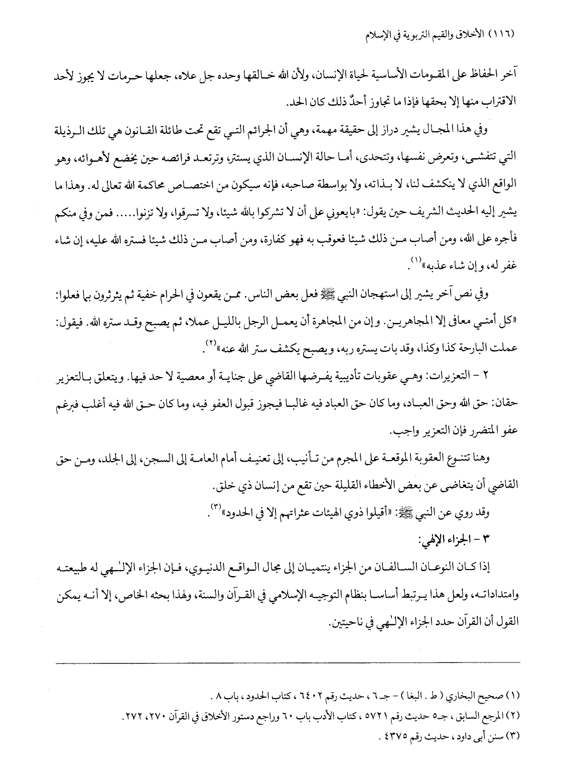 (2) المرجع السابق، ج 5 حديث رقم 5721، كتاب الأدب باب 60 وراجع دستور الأخلاق في القرآن 270، 272.