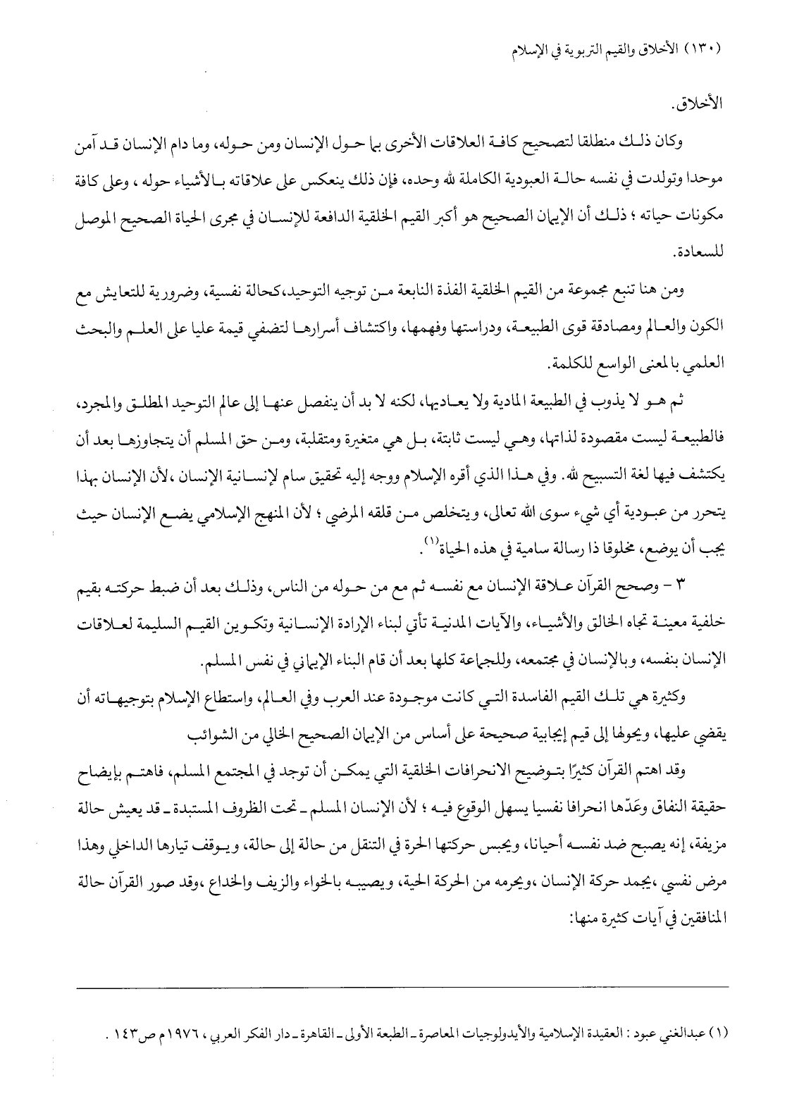 (1) عبد الغني عبود: العقيدة الإسلامية والأيدولوجيات المعاصرة- الطبعة الأولى- القاهرة- دار الفكر العربي، 1976 م ص 143.