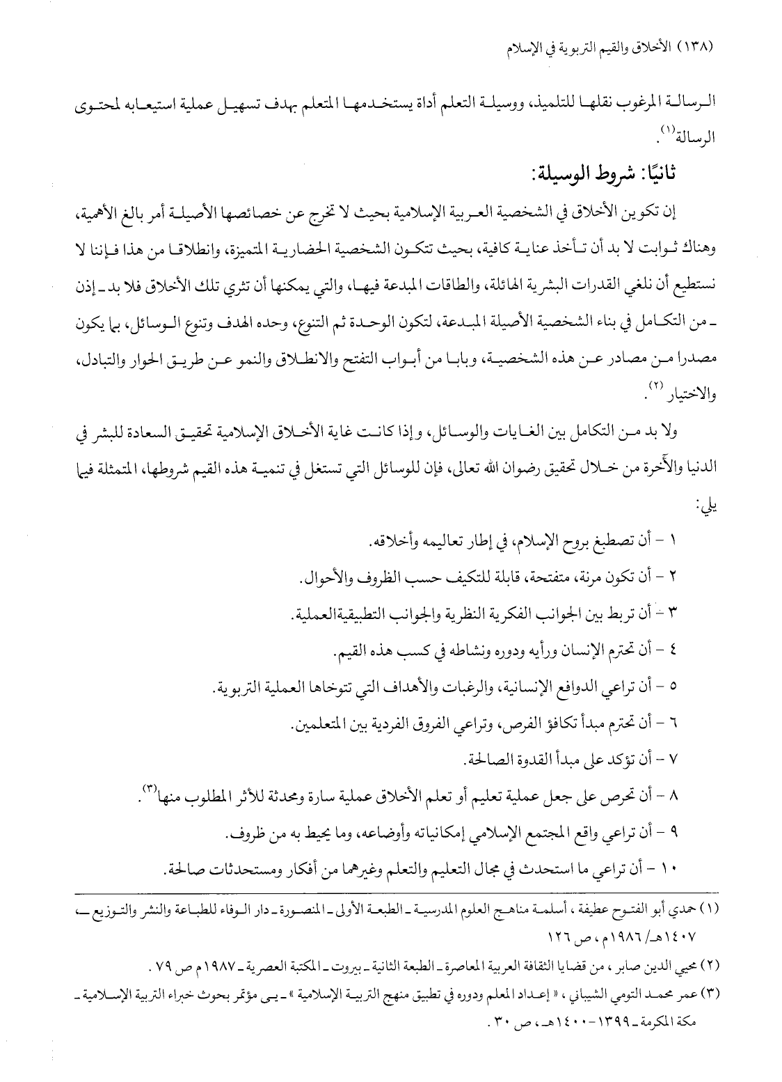 (3) عمر محمد التومي الشيباني، «إعداد المعلم ودوره في تطبيق منهج التربية الإسلامية» - مؤتمر بحوث خبراء التربية الإسلامية- مكة المكرمة- 1399- 1400 هـ، ص 30.