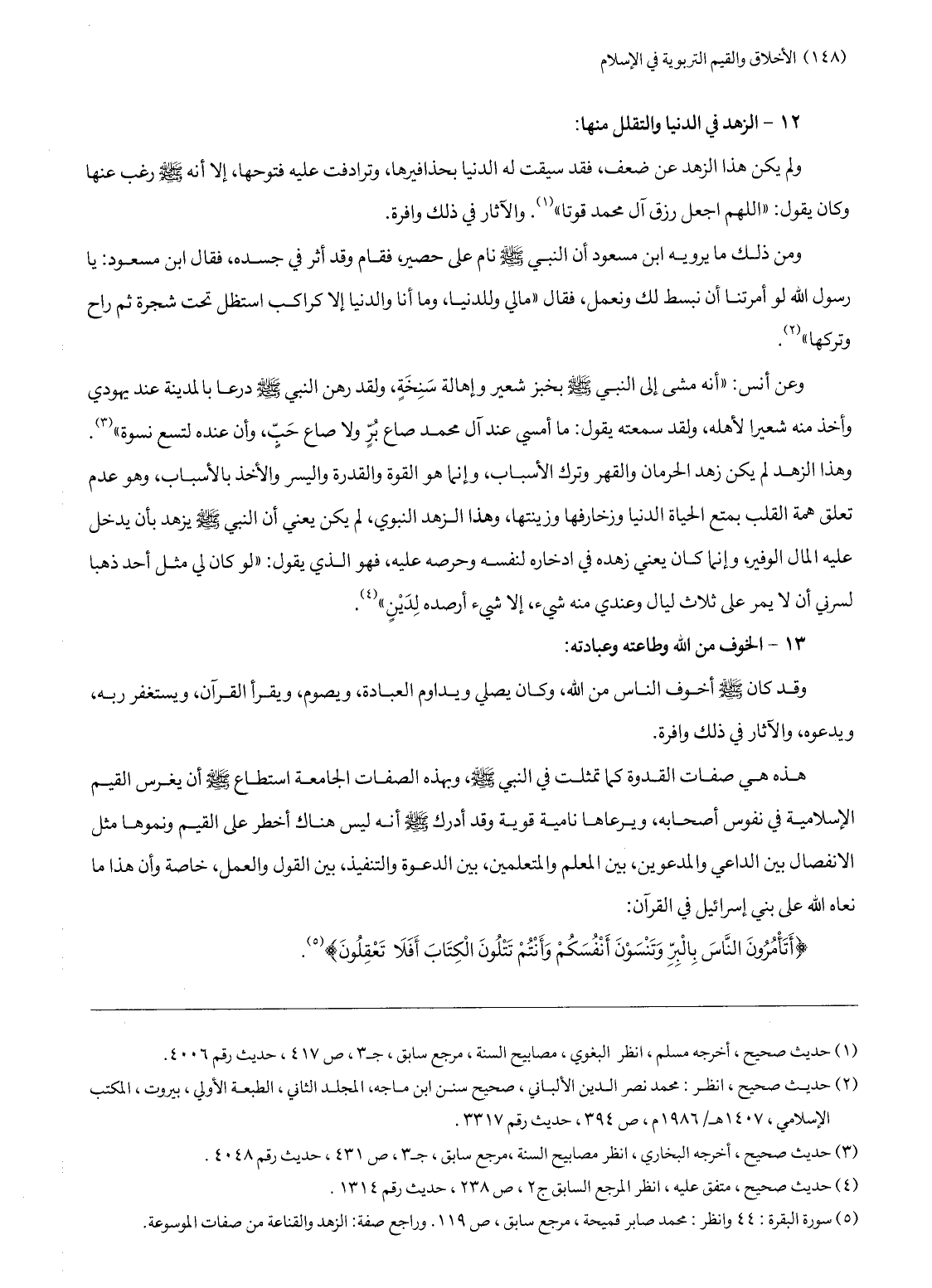 (5) سورة البقرة: 44 وانظر: محمد صابر قميحة، مرجع سابق، ص 119. وراجع صفة: الزهد والقناعة من صفات الموسوعة.