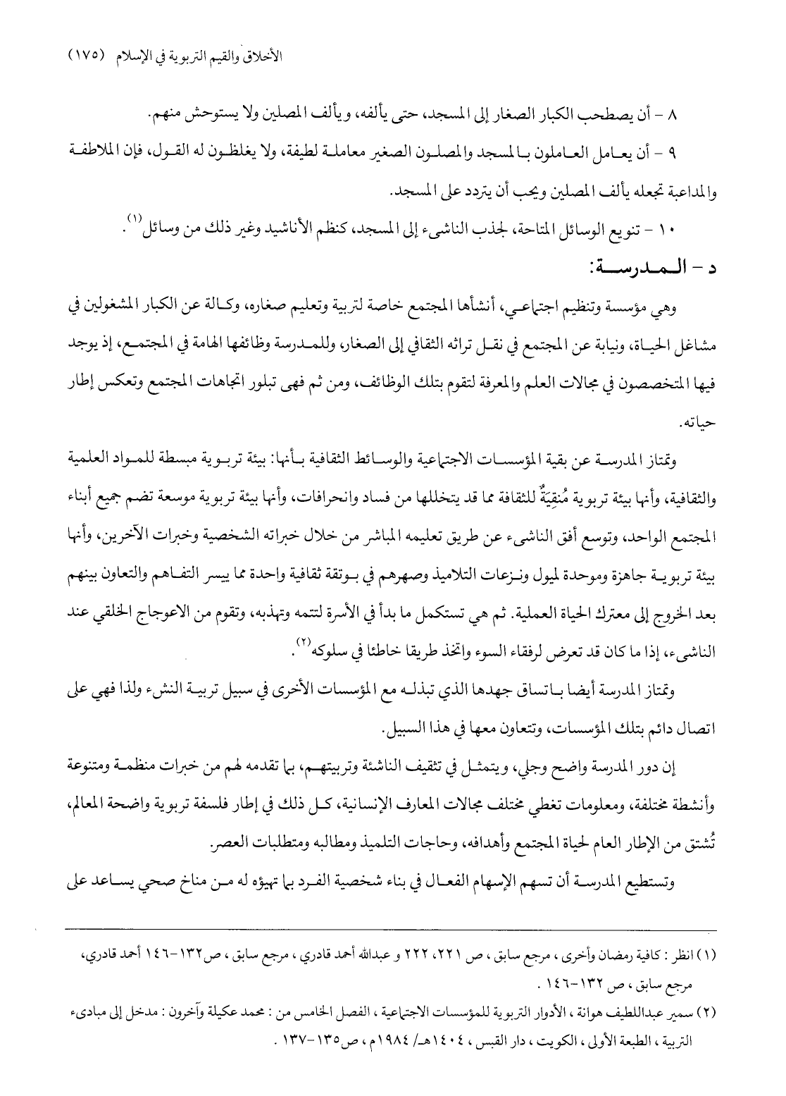 (2) سمير عبد اللطيف هوانة، الأدوار التربوية للمؤسسات الاجتماعية، الفصل الخامس من: محمد عكيلة وآخرون: مدخل إلى مبادىء التربية، الطبعة الأولى، الكويت، دار القبس، 1404 هـ/ 1984 م، ص 135- 137.