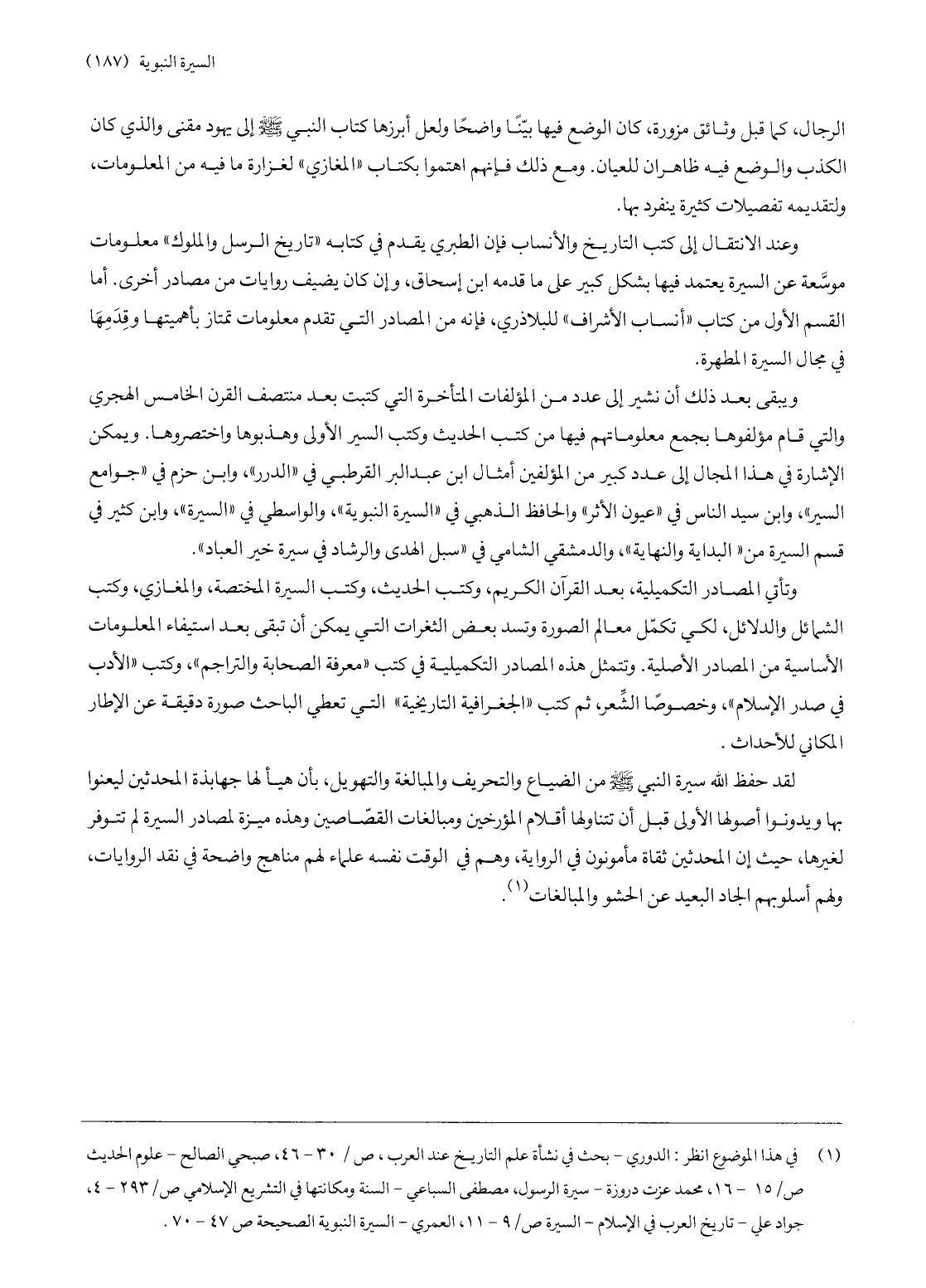 (1) في هذا الموضوع انظر: الدوري- بحث في نشأة علم التاريخ عند العرب، ص/ 30- 46، صبحي الصالح- علوم الحديث ص/ 15- 16، محمد عزت دروزة- سيرة الرسول، مصطفى السباعي- السنة ومكانتها في التشريع الإسلامي ص/ 293- 4، جواد علي- تاريخ العرب في الإسلام- السيرة ص/ 9- 11، العمري- السيرة النبوية الصحيحة ص 47- 70.