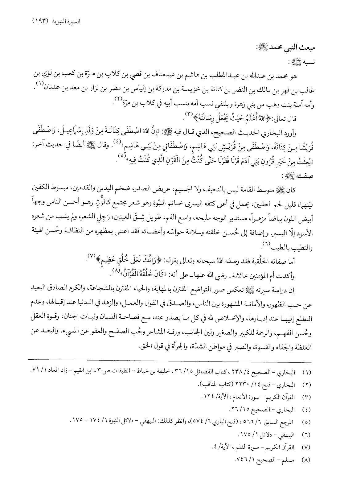 وأورد البخاري الحديث الصحيح، الذي قال فيه صلّى الله عليه وسلّم: «إنّ الله اصطفى كنانة من ولد إسماعيل، واصطفى قريشا من كنانة، واصطفى من قريش بني هاشم، واصطفاني من بني هاشم» «4» . وقال صلّى الله عليه وسلّم أيضا في حديث آخر: