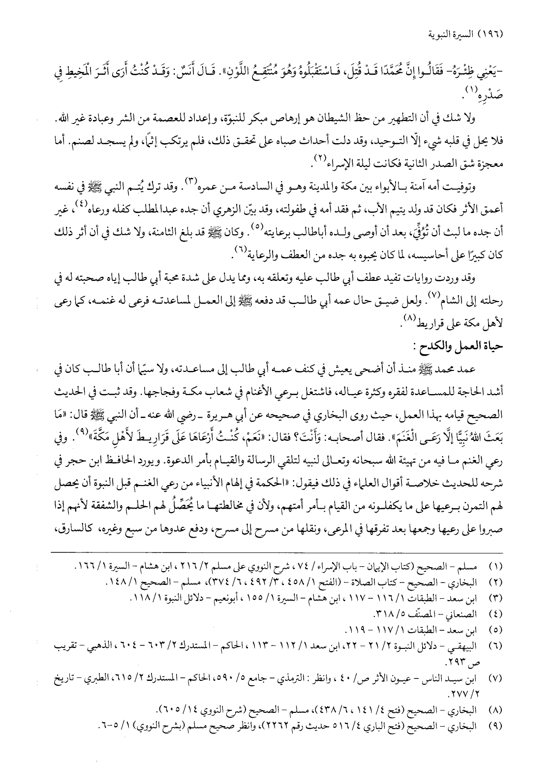 (6) البيهقي- دلائل النبوة 2/ 21- 22، ابن سعد 1/ 112- 113، الحاكم- المستدرك 2/ 603- 604، الذهبي- تقريب ص 293.
