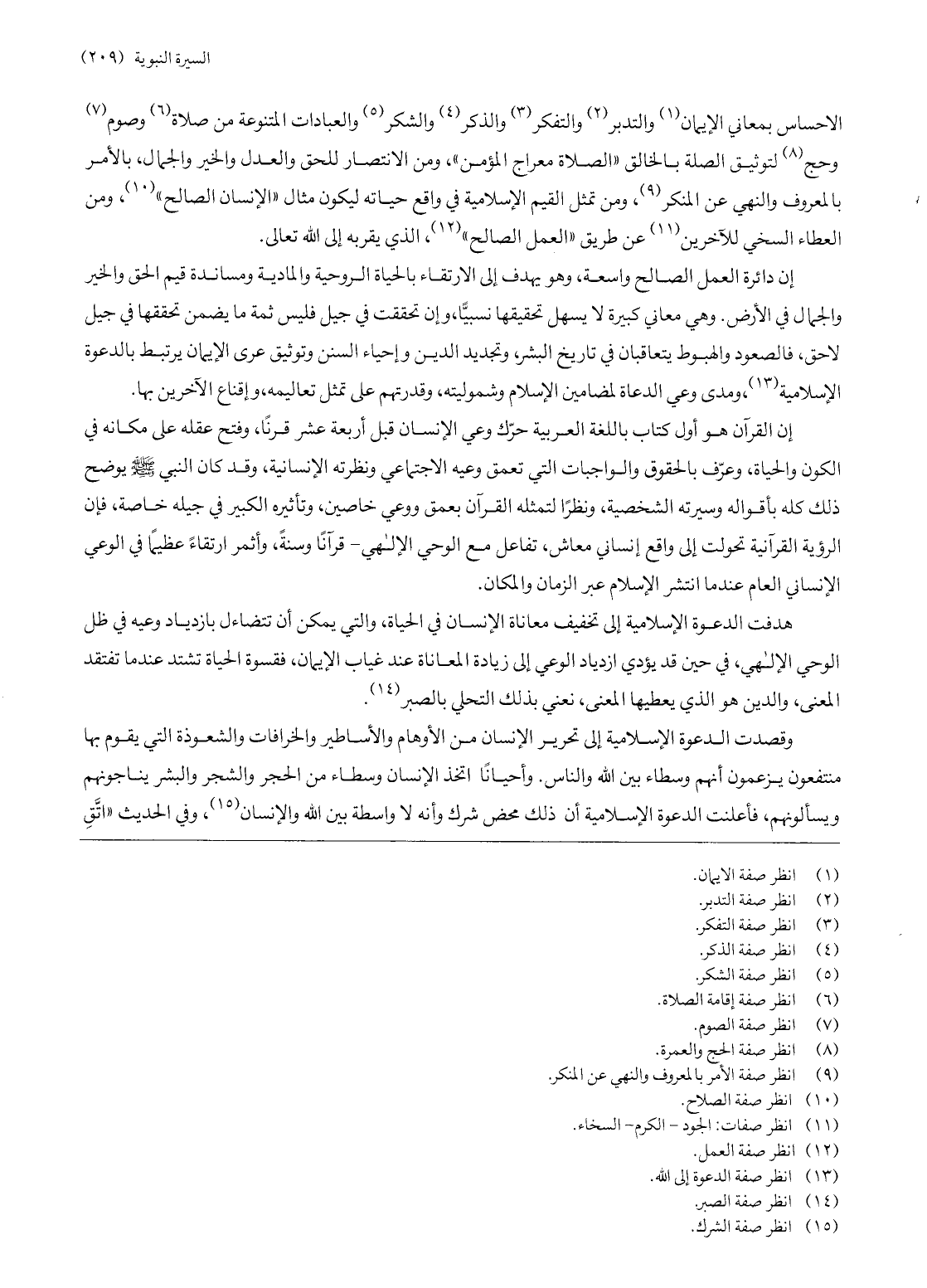 إن دائرة العمل الصالح واسعة، وهو يهدف إلى الارتقاء بالحياة الروحية والمادية ومساندة قيم الحق والخير والجمال في الأرض. وهي معاني كبيرة لا يسهل تحقيقها نسبيّا، وإن تحققت في جيل فليس ثمة ما يضمن تحققها في جيل لاحق، فالصعود والهبوط يتعاقبان في تاريخ البشر، وتجديد الدين وإحياء السنن وتوثيق عرى الإيمان يرتبط بالدعوة الإسلامية «13» ، ومدى وعي الدعاة لمضامين الإسلام وشموليته، وقدرتهم على تمثل تعاليمه، وإقناع الآخرين بها.