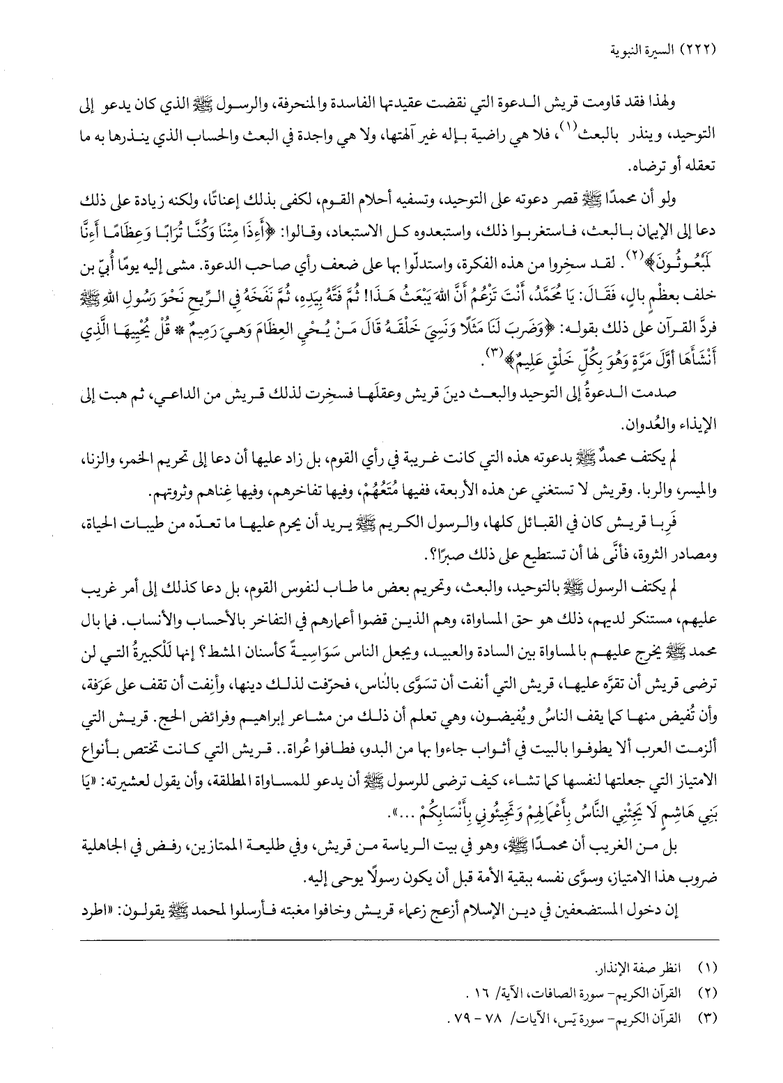 إنها للكبيرة التي لن ترضى قريش أن تقرّه عليها، قريش التي أنفت أن تسوّى بالناس، فحرّفت لذلك دينها، وأنفت أن تقف على عرفة، وأن تفيض منها كما يقف الناس ويفيضون، وهي تعلم أن ذلك من مشاعر إبراهيم وفرائض الحج. قريش التي ألزمت العرب ألا يطوفوا بالبيت في أثواب جاءوا بها من البدو، فطافوا عراة ... قريش التي كانت تختص بأنواع الامتياز التي جعلتها لنفسها كما تشاء، كيف ترضى للرسول صلّى الله عليه وسلّم أن يدعو للمساواة المطلقة، وأن يقول لعشيرته: «يا بني هاشم لا يجئني النّاس بأعمالهم وتجيئوني بأنسابكم ... » .