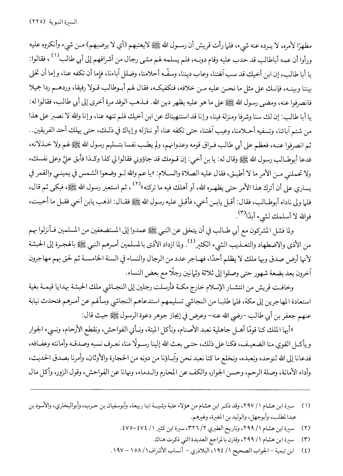 وخافت قريش من انتشار الإسلام خارج مكة فأرسلت رجلين إلى النجاشي ملك الحبشة بهدايا قيمة بغية استعادة المهاجرين إلى مكة، فلما طلبا من النجاشي تسليمهم استدعاهم النجاشي وسألهم عن أمرهم فتحدث نيابة عنهم جعفر بن أبي طالب- رضي الله عنه- وعرض في إيجاز جوهر دعوة الرسول صلّى الله عليه وسلّم حيث قال: