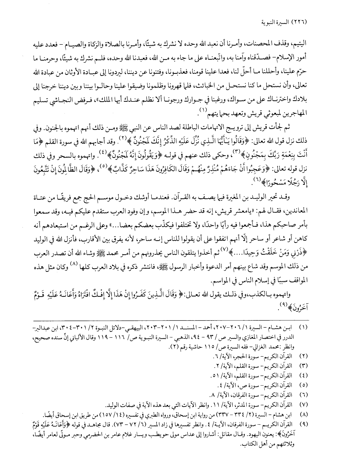 (8) ابن هشام- السيرة (2/ 334- 337) من رواية ابن إسحاق، ورواه الطبري في تفسيره (14/ 157) من طريق ابن إسحاق أيضا.